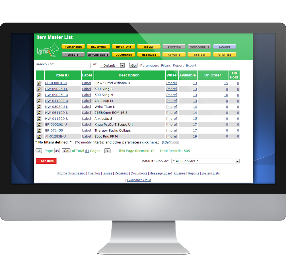Dispensing DME from your inventory is as easy as scanning a bar code. Once you have scanned the items you have used, just click the “finish issue” option. The LYNX integrated platform will then display your current levels, and process orders when they reach your restore points.